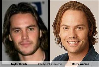 2. Taylor Kitsch es clavado a Barry Watson y sospecho que son la misma persona. Os juro que hasta hace bien poco creía que el Señor Kitsch (anda que no mola llamarse el «Señor Kitsch») era el mismo chico que salió en «Siete en el paraíso» y «Secuestrando a la Señorita Tingle» (trajinándose a la Joey y amordazando a Helen Mirren). Los dos tienen esa melenita marca de la casa… Aún recuerdo cuando Barry Watson se cortó la melena, ¡aquello fue más fuerte que cuando se la cortó Felicity! La web Totally Looks Like demuestra que no estoy loco y que Kitsch y Watson son en realidad uno: