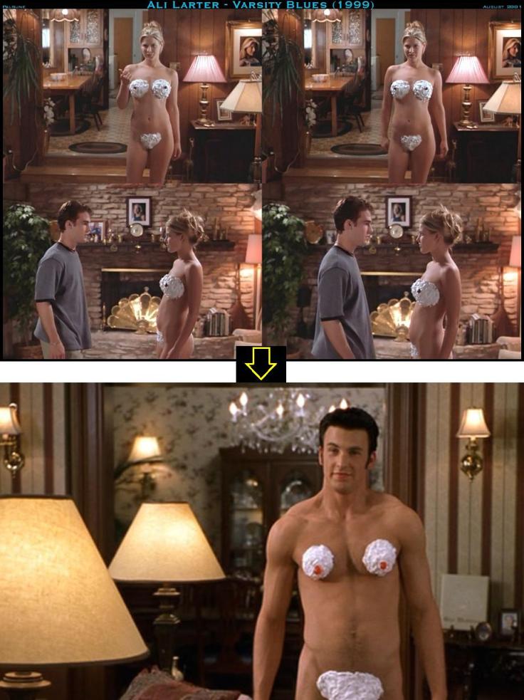 Hablamos, of course, de aquella en la que para seducir a The Beek decide quedarse en pelotas, eso sí, cubriendo sus partes íntimas con nata montada. Oh My Beekster! Mientras que algunos le hubieran echado un poco de sirope de chocolate por encima, otros hubieran ido a por una bata para taparla y que no cogiera frío… ¿qué es lo que hace The Beek al respecto? Pues tendréis que ver la peli. O, si queréis, podéis optar por la parodia de esa secuencia que hacen en Not Another Teen Movie (¡grande!) en la que es él (Chris Evans, Capitán América) el que trata de seducirla a ella (Chyler Leigh, Anatomía de Grey) con resultados bastante janderklanders.