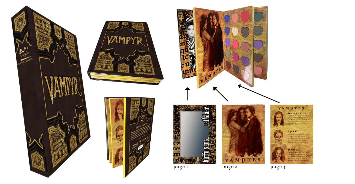 Vampire Cosmetic va a sacar una línea de maquillaje inspirada en Buffy Cazavampiros. La paleta imita el conocido libro de Vampyr que Giles entrega a Buffy en el primer episodio.
