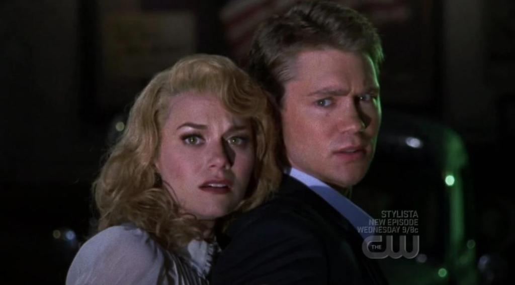 En We three (my echo, my shadow and me) (6×11). Lucas se encuentra en un bloqueo creativo mientras ve la película Casablanca y acaba imaginándose una historia de gángsters. Aunque este episodio no es en blanco y negro, tiene características típicas del género. En este mundo, Lucas es el dueño del Karen’s Cafe, ahora un club y Dan es un gángster dueño de un club rival dispuesto a todo para ser el hombre más poderoso. Peyton es la hija adoptiva de Dan y pronto se enamora de Lucas, pero la historia tiene un trágico final que sirve para sembrar lo que le ocurrirá a nuestra Peyton.