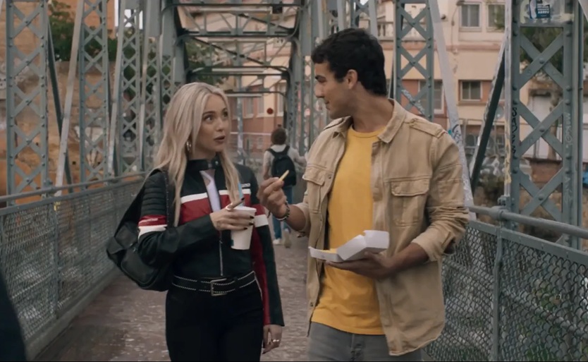 De acuerdo, «pisan a fondo» para una peli de carreras no es romperse la cabeza, pero es que no sabía muy bien qué toque de originalidad podía aportarle yo a una película como Ídolos, que ha centrado toda su campaña de publicidad en la velocidad. Y, vale, en su dúo protagonista: Óscar Casas (que sigue siendo «el hermano de» hasta que no se eche a la espalda una película él solito, ¿será esta? -no he visto Me has robado el corazón, lo siento-) y Ana Mena, que son pareja en la vida real (¿vibes de aquel que sí que era piloto de verdad en la vida real y Elsa Pataky?).